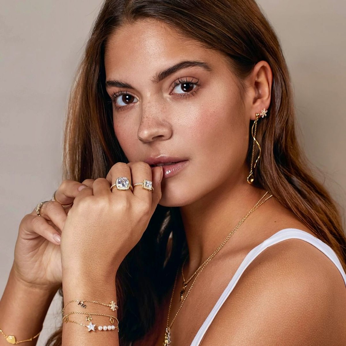 Utrolig luksuriøs, smuk ring, der har en klar firkantet zirkon i midten og små zirkoner hele vejen rundt både om den store zirkon og på selve ringen. Ringen er i høj kvalitet sterling sølv 925 eller med 1 micron 24 ct. forgyldning ovenpå Sterling sølv 925.