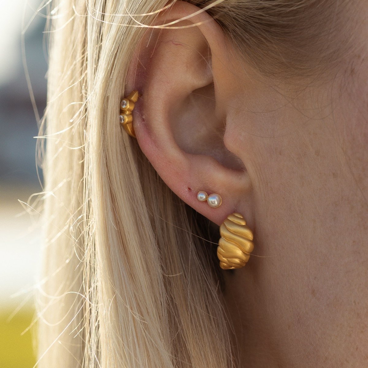 ByBiehl's Lucy hoops kombinerer tidløs elegance med moderne design, og de fås både i forgyldt sterlingsølv og sterlingsølv. Udsmykket med funklende zirkonia, tilføjer disse øreringe et strejf af glamour, der lyser op til enhver særlig lejlighed, som konfirmationer, Mors Dag, Valentinsdag eller fødselsdage. Lucy hoops er den perfekte gave til enhver anledning.