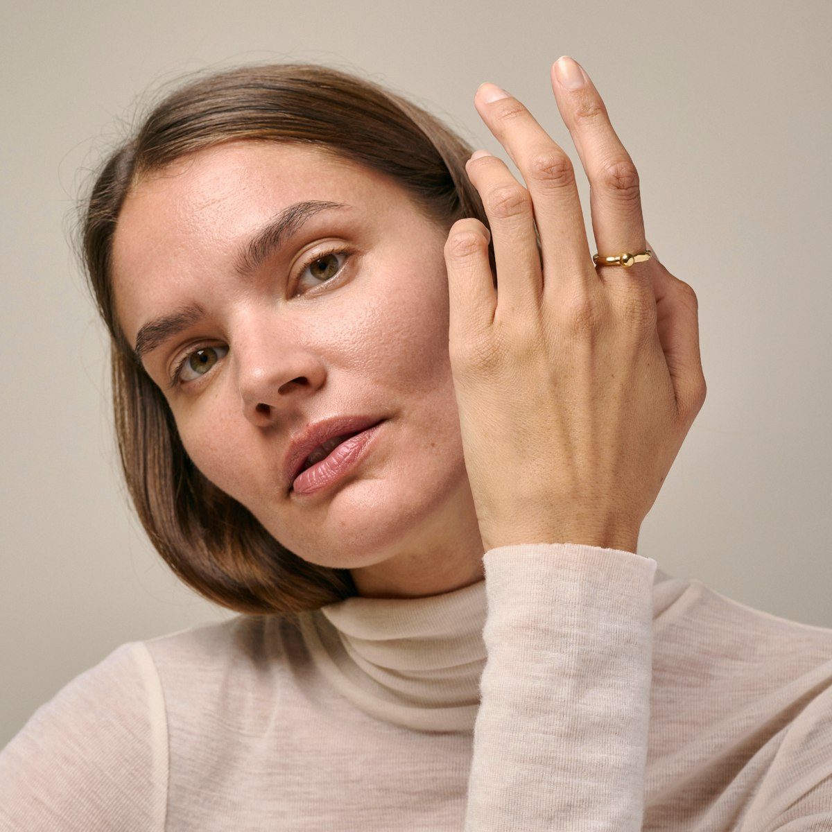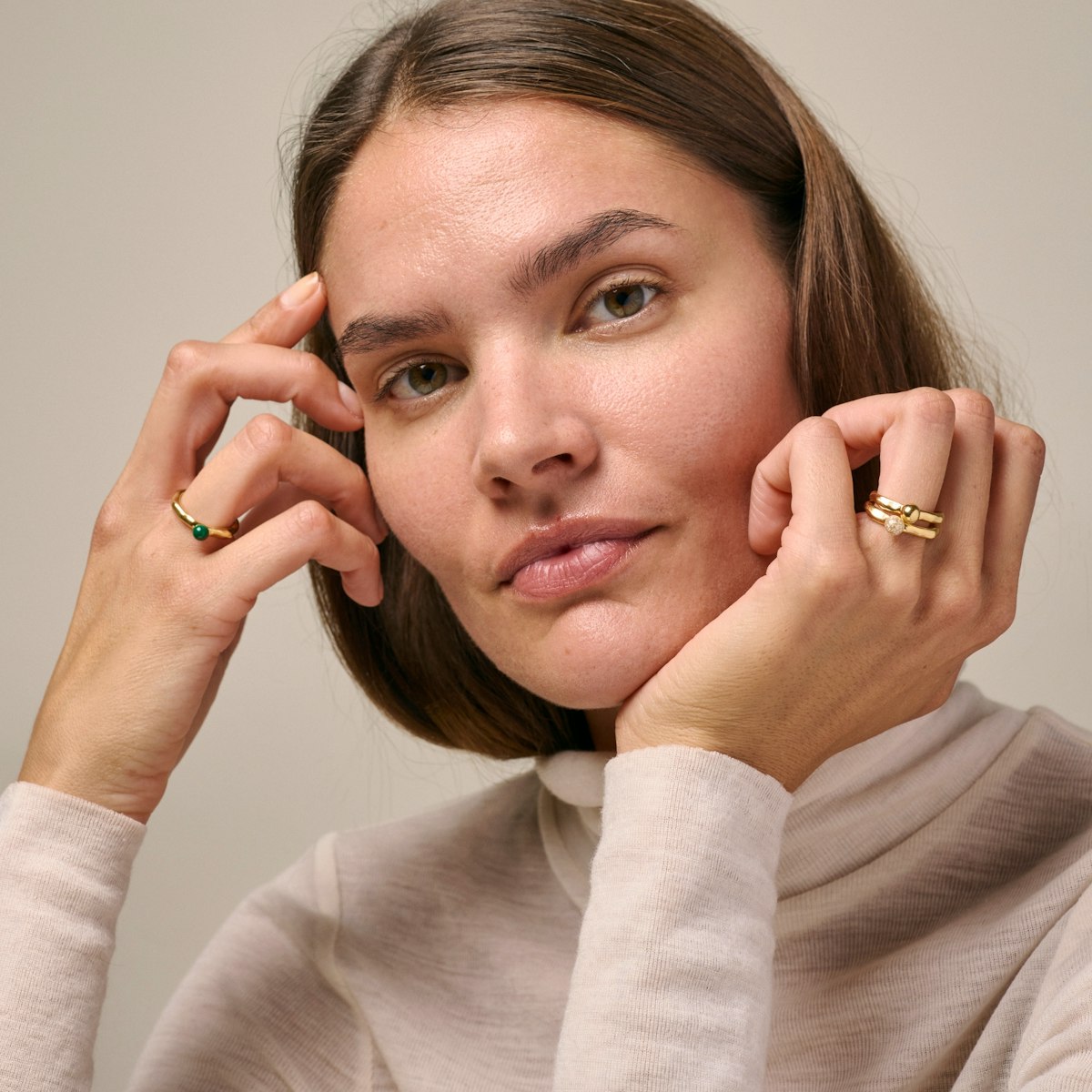 Ringen er fremstillet af kvalitetsmaterialer og er forgyldt for at sikre en holdbar og strålende finish. Den runde cirkel symboliserer evighed og fuldkommenhed, hvilket gør denne ring til en betydningsfuld gave til dig selv eller en kær ven. Uanset om den bæres alene eller i kombination med andre smykker, vil denne ring uden tvivl tilføje elegance og charme til din smykkesamling.