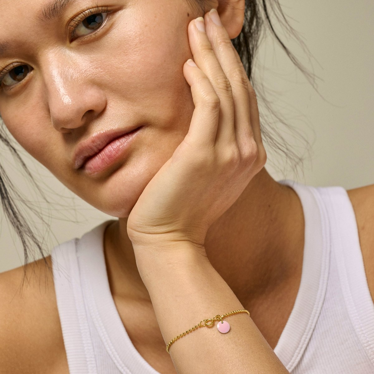 Ball Chain Bracelet Flamingo er et yderst alsidigt smykke, der fungerer perfekt både til hverdag og fest. Den rosa nuance komplimenterer mange farver – fra neutrale beige og grå til dybe blå og grønne – og armbåndet er smukt alene, men også oplagt at kombinere med andre armbånd fra Enamel Copenhagen. Prøv for eksempel at stacke det med Mini Lola-armbånd eller et mere rå kædesmykke for et moderne, personligt udtryk.