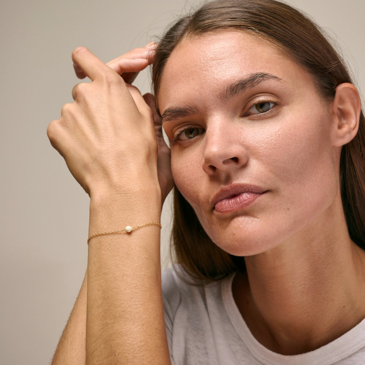 Dette forgyldte armbånd, kendt som Balloon Daisy Bracelet, er en tidløs skønhed, der elegant kombinerer enkelhed med strålende glans. I midten pryder en hvid cirkel, der tilføjer et sofistikeret touch til designet.