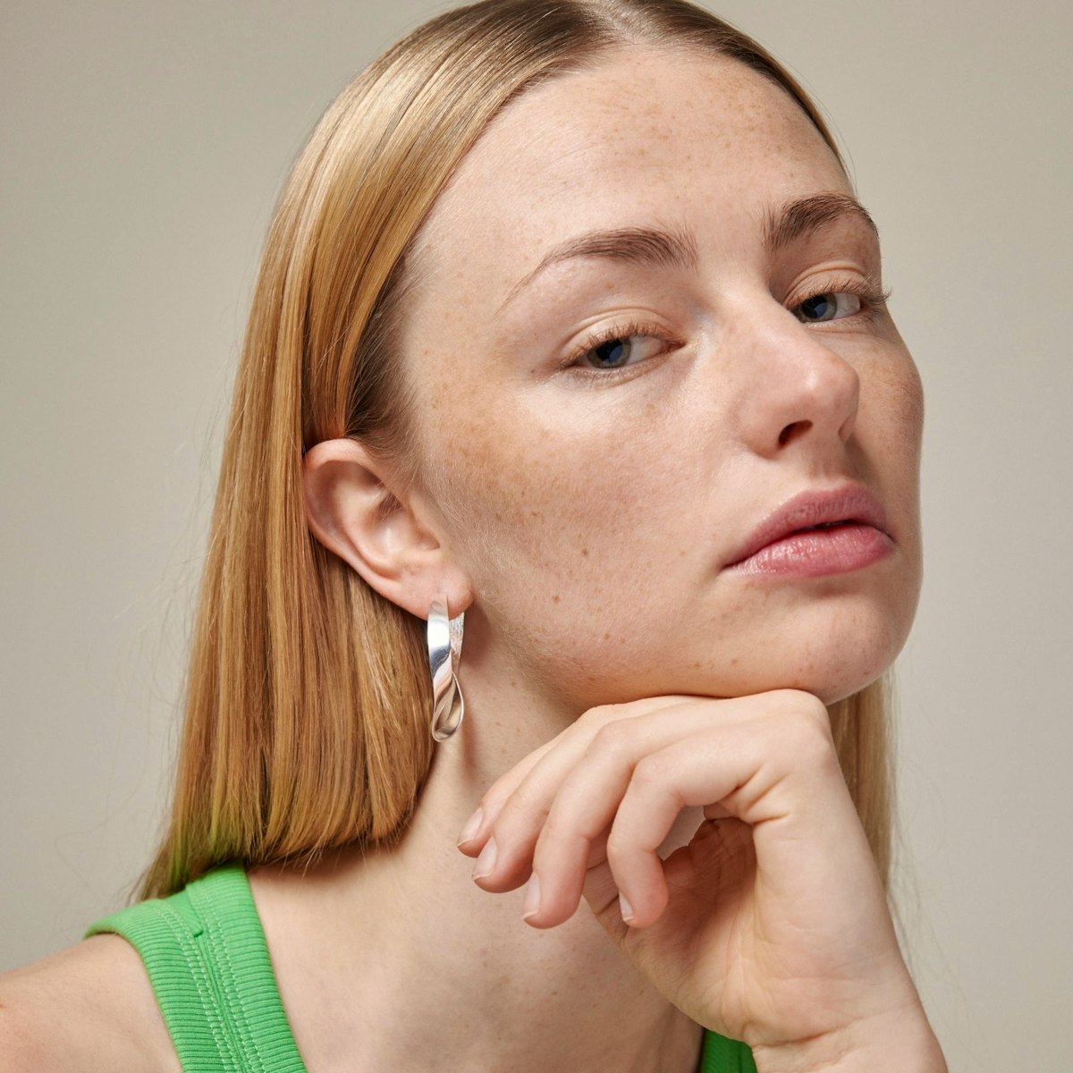 Scarlet hoop large, findes i belagt med 18 karat guld og en 925 sterling sølv. Det er en imponerende stor og ekstraordinært i sit håndlavede og storslåede design. Guldhoope har en markant fylde og overdådighed, men forbliver let og behagelig at bære. Scarlet hoop large er det ideelle festørepynt, velegnet til alt fra sommerens bryllupper til julefrokoster.