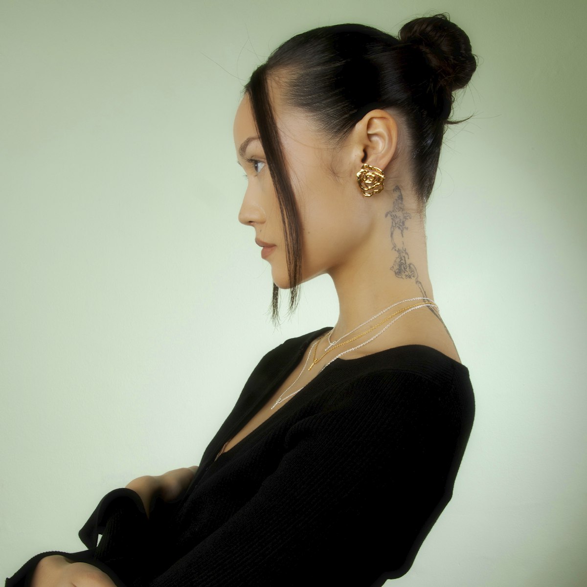 Roseøreringen udstråler elegance og tilføjer en eksklusiv detalje til din påklædning. Den enkle design gør øreringen velegnet til at kombinere med andre øreringe fra Jane Kønig, hvilket skaber et personligt udtryk. Der findes også en variant af roseøreringen med kæder.