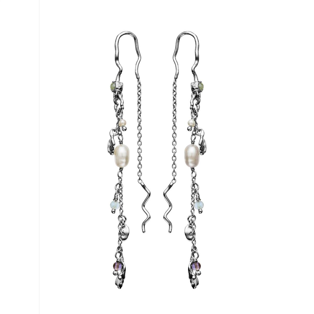 Maanestenin Poppy-korvakorut on ainutlaatuinen koru, jossa yhdistyvät naiselliset yksityiskohdat sekä taiteellinen ja orgaaninen muotoilu. Pitkät, tyylikkäät korvakorut ovat 61,5 mm:n kokoiset ja liikkuvat hieman käytettäessä, mikä antaa niille eloisan ja hienostuneen ilmeen. Korua koristavat erilaiset kivet ja herkkä makeanveden helmi, joka tuo koruun luonnollisen ja eksklusiivisen kosketuksen. Metallin kierretyt yksityiskohdat luovat raa'an mutta hienostuneen ilmeen, joka korostaa Maanestenin kykyä yhdistää klassinen ja moderni.