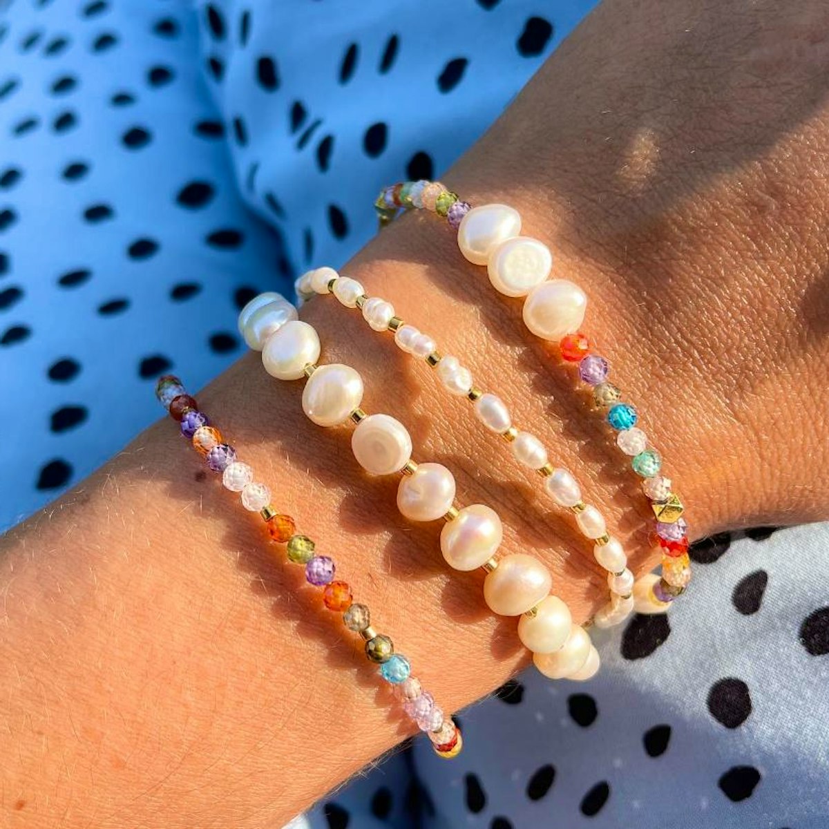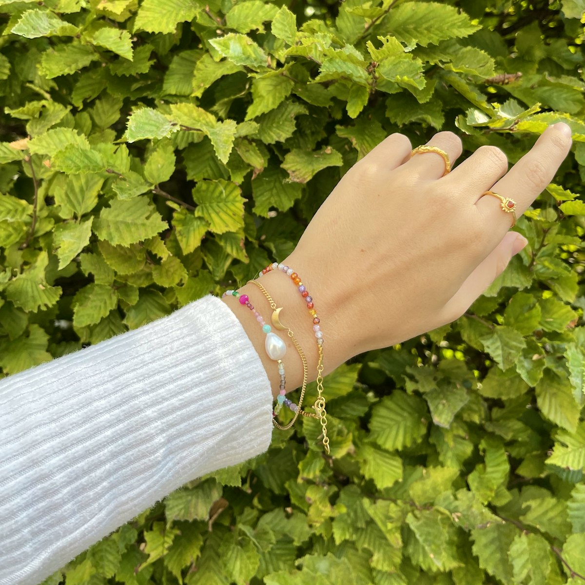Unikt håndlavet armbånd i 24kt. forgyldt sterling sølv (925) og halvædelsten (3mm).