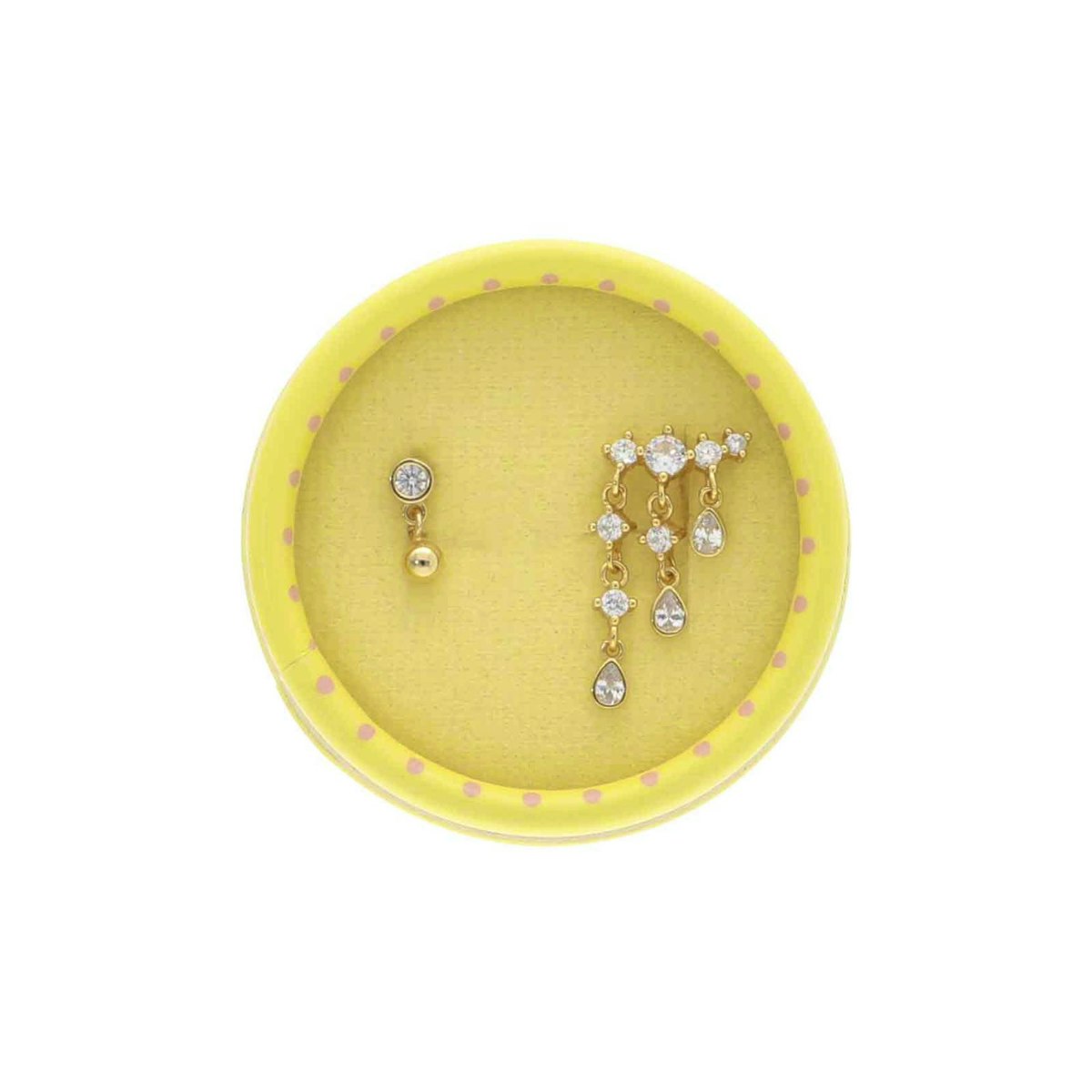 Føl dig fri som en fugl med den betagende Free As A Bird Left Earring Box; en lille æske fyldt med elegance, glimmer og ynde. Denne skønne øreringeboks består af to smukke ørestikker, hvor den ene er en dekorativ statementørering, og den anden en fin, lille ørestik. De er begge fremstillet i 24 karat forgyldt sterlingsølv og prydet med klare zirconia sten, der glimter som dugdråber i morgensol.