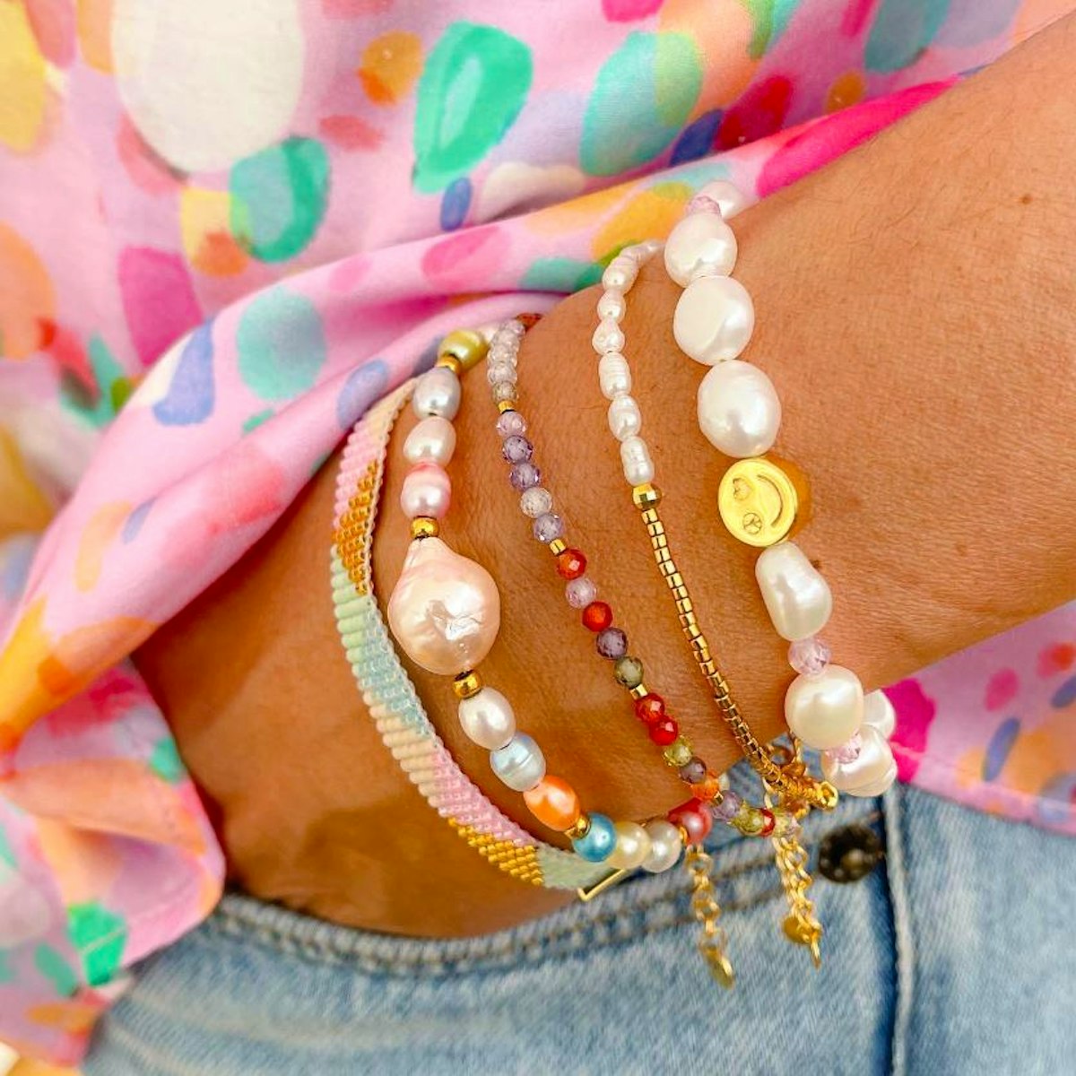 Unikt håndlavet armbånd i 18kt. forgyldt sterling sølv (925) og halvædelsten (2mm).
