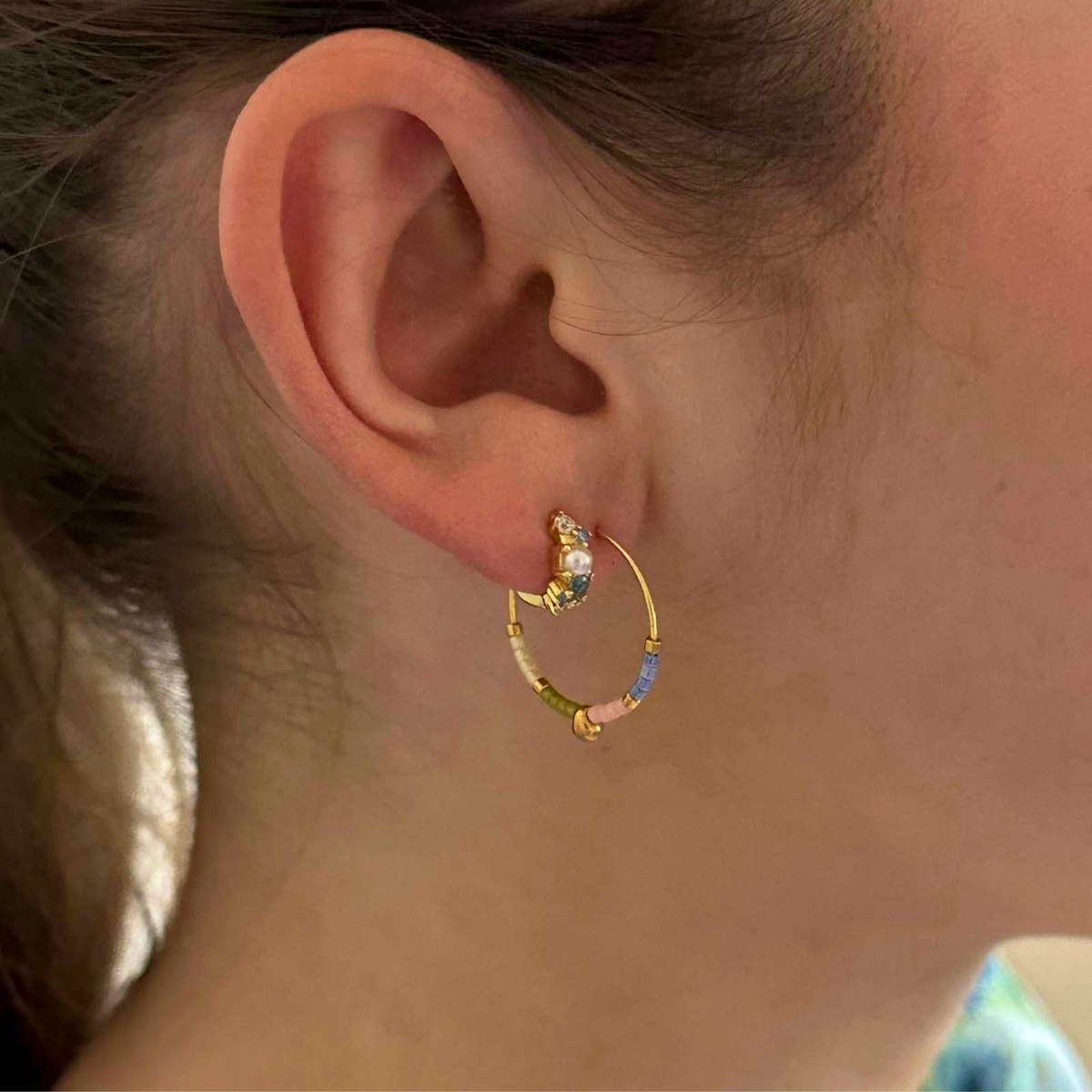 Regitze Forest Hoops er til dig, der elsker farver, men stadig vil holde det enkelt. De små creoler er pyntet med fine, små perler i blide grønne, blå og rosa nuancer, der spiller perfekt sammen og giver et friskt og legende udtryk.