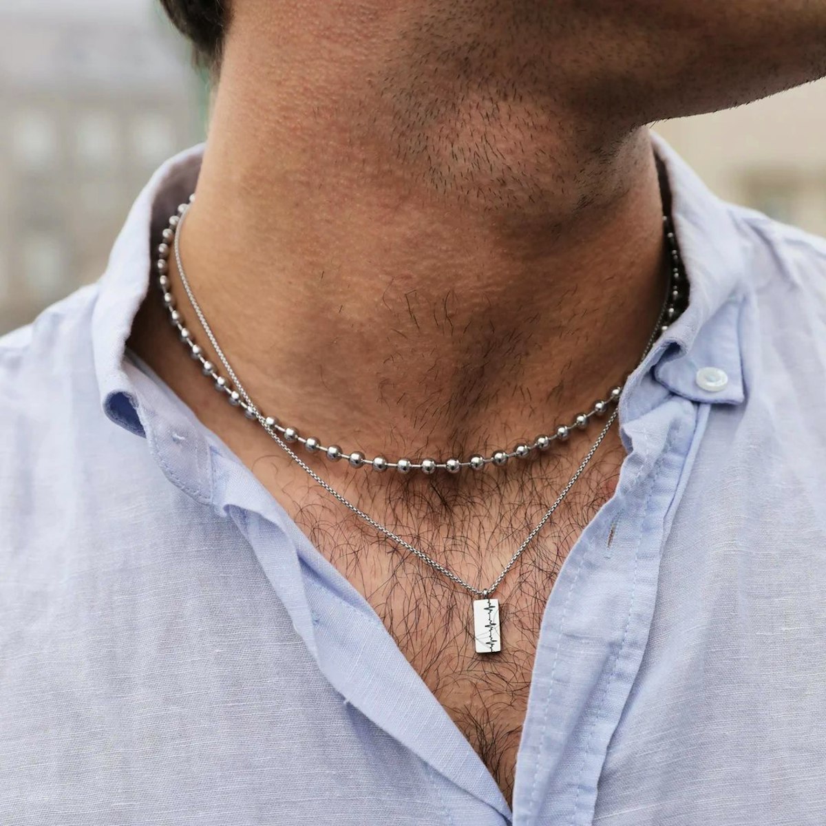 En ekstremt stilfuld halskæde lavet af runde kugler, der let kan matches med ethvert andet smykke. Halskæden er lavet af rustfrit stål og måler 45 cm + 5 cm forlængelse.