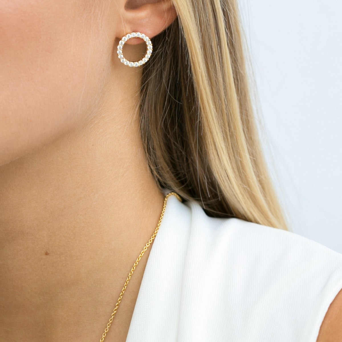 Disse elegante øreringe fra Sif Jakobs er det perfekte valg til at tilføje et sofistikeret og tidløst touch til din stil. Fremstillet i 925 sterlingsølv og forgyldt med 18 karat guld og rhodineret sterlingsølv 925, har øreringene en blankpoleret overflade, der giver dem en smuk og skinnende finish. De er prydet med facetslebne hvide zirkoner, som tilføjer et subtilt, men iøjnefaldende glimt, der fanger lyset og fremhæver din naturlige skønhed.