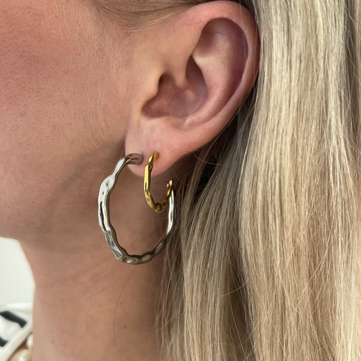 Disse hoops er udformet med organiske overgange, der frembringer en elegant og luksuriøs fremtoning. De er velegnede til både hverdagsbrug og festlige lejligheder og kan nemt kombineres med resten af Sistie2NDs kollektion.