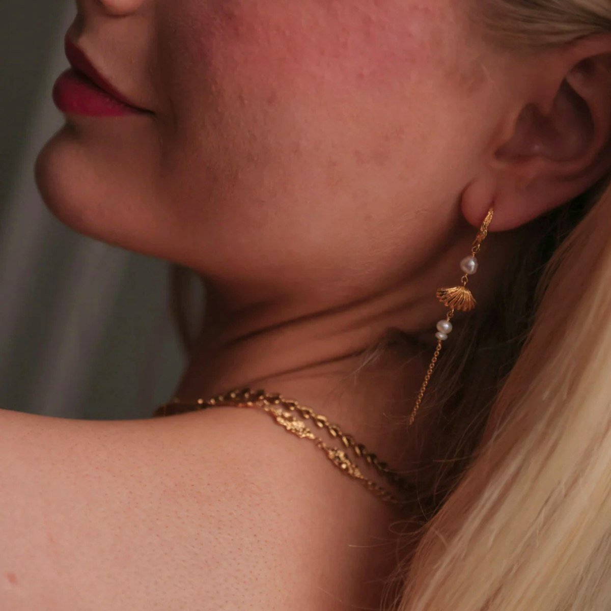 Darya Øreringe fra Sistie er skabt til at forføre med deres enkle skønhed og tidløse elegance. Inspireret af havets magi forener de bløde, naturlige former med et luksuriøst udtryk, der både føles feminint og stærkt. De smukke søskaller leder tankerne hen på lange dage ved stranden, mens den skinnende ferskvandsperle tilfører en følelse af ro og klassisk charme.