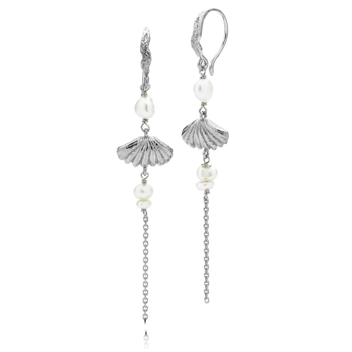 Med deres 65 millimeter lange silhuet bevæger øreringene sig let, hver gang du rører dig. De fås både i skinnende sølv og i en varm forgyldt version, så du kan vælge præcis det udtryk, der passer til din stil. Uanset varianten er de fremstillet i 100 procent genanvendt sterlingsølv, og den forgyldte model er belagt med 18 karat guld for et ekstra luksuriøst skær. Begge er naturligvis nikkelfri, så du kan bære dem hele dagen med fuld komfort. Ferskvandsperlerne er naturlige, hvilket betyder, at ingen par er helt ens. Hver perle har sin egen unikke form og glød, hvilket gør dit smykke helt personligt.