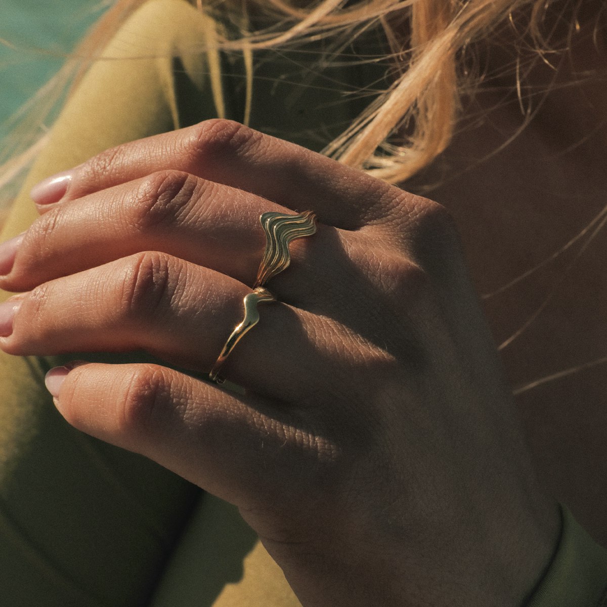 Ringen er designet med en glat bølget overgang, som passer fantastisk sammen med resten af Silke Kristensens kollektion - Ocean Waves.