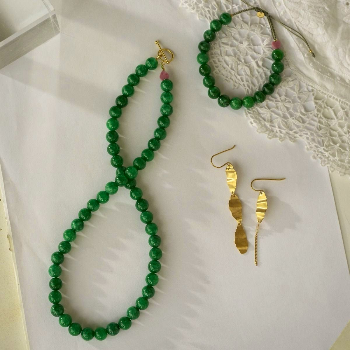 Oplev den forførende charme i STINE A Jewelry Cherie Bon Bon Happy Green Bracelet. Det er et sofistikeret armbånd, der bringer coolness og elegance til enhver stil. Dette must-have armbånd kombinerer ægte håndværk med moderne design i 18 karat forgyldt 925 sterlingsølv og grøn jade, skabt til den stilbevidste kvinde, der værdsætter både kvalitet og bæredygtigt smykkedesign. Armbåndet præsenterer sig med elegante ædelstene i den dybeste grønne farve, ledsaget af et fint, lille hjerte og en dekorativ lås, der tilføjer både funktionalitet og æstetisk værdi. Den perfekte størrelse gør det ideelt til både hverdags- og festbrug. Kombiner det med en enkel bluse og blazer for et klassisk look eller stack det med andre armbånd fra STINE A Jewelry for et mere vovet og personligt udtryk. De grønne nuancer bringer glæde og varme til håndleddet og gør det til et uundværligt accessory i enhver smykkesamling. Bag dette smukke smykke står den kreative Stine A Johansen, der fra sit showroom nord for København designer legefulde mix og match-smykker med passion og dedikation. Som nonstop fuldtidsdesigner får hun løbende idéer til nye designs – endda i sine drømme og under yoga. Hendes omfavnende og rummelige tilgang til design afspejles i Happy Green-kollektionen, hvor naturens friske farver møder tidløs elegance for at skabe smykker, der udstråler positivitet og livskraft. STINE A Jewelry forpligter sig på kvalitet og bæredygtighed gennem brug af 925 sterlingsølv og forgyldte materialer af højeste kvalitet. Brandets fokus på tidløst design sikrer, at hvert smykke bliver et langtidsholdbart og værdifuldt tilskud til enhver smykkesamling. Den omhyggelige udvælgelse af ædelstene som jade skaber unikke farvepaletter, der ikke blot pynt håndleddet, men også formidler en følelse af friskhed og ro, uanset hvordan armbåndet styles. Når du køber STINE A Jewelry hos A-Hjort, får du ikke blot et eksceptionelt armbånd, men også en komplet serviceydelse, der gør dit køb til en fornøjelse. Vi tilbyder gratis fragt på alle ordrer, så du kan modtage dit nye yndlingsarmbånd direkte til døren uden ekstra omkostninger. Vælger du at give armbåndet som gave, pakker vi det smukt ind i gratis gaveindpakning, der understreger smykkets særlige karakter. Skulle du mod forventning ikke være helt tilfreds med dit køb, sikrer vores nemme bytteservice, at du hurtigt og ubesværet kan få det perfekte armbånd. STINE A Jewelry Cherie Bon Bon Happy Green Bracelet er mere end et smykke. Det er et udtryk for personlig stil, kvalitetsbevidsthed og kærlighed til ægte design. Lad dette elegante armbånd blive dit nye signature piece og oplev, hvordan ægte danske designtraditioner forenes med moderne elegance i hvert eneste detalje.