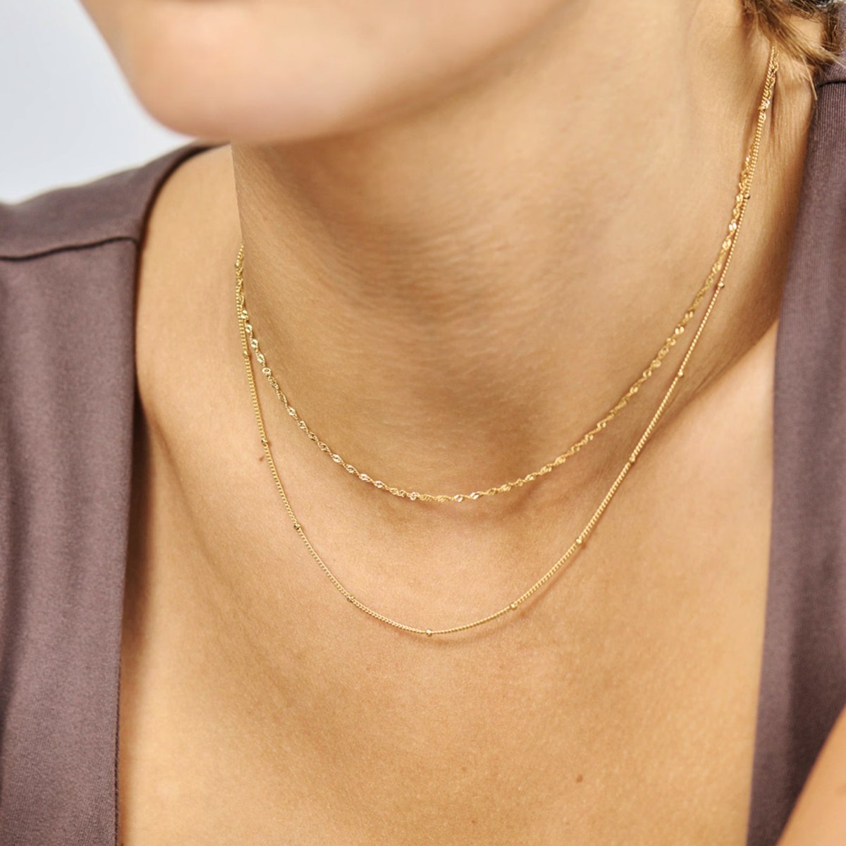 Med Flow Necklace får du en kæde, der er alsidig i sit udtryk. Brug den alene som et elegant statement, eller lad den danne basen for en mere legende styling med flere kæder i forskellige længder og tykkelser. Den snoede struktur gør, at kæden fanger lyset fra alle vinkler, hvilket giver et smukt, sofistikeret skær.