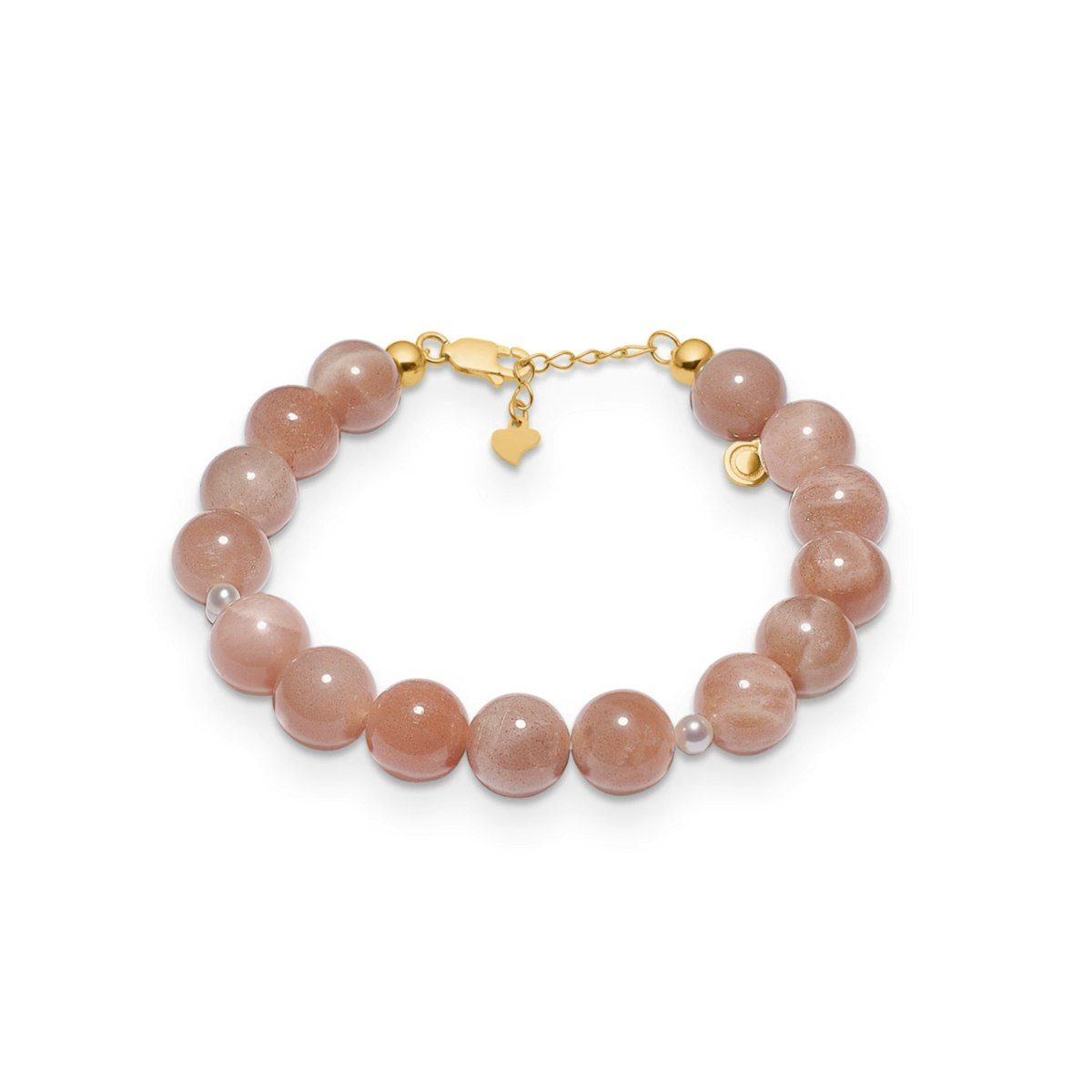 Det elegante armbånd er sammensat af 10 mm store, glatte sunstone-kugler, der giver et luksuriøst og markant udtryk om håndleddet. Den forgyldte karabinlås tilfører et strejf af eksklusivitet og giver mulighed for at justere armbåndets længde fra 18 til 20 cm, så det kan tilpasses din personlige pasform.