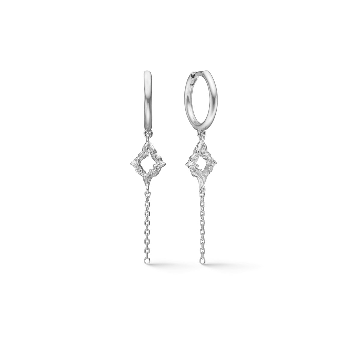 Peak Hoops fra Studio.Z’s nye AW25-kollektion forener tidløs elegance med moderne kant. Øreringene er designet som små hoops, der bærer et karakterfuldt vedhæng inspireret af naturens rå, organiske former. Det unikke mønster i metallet giver en tekstureret overflade, der reflekterer lyset smukt, mens den fine kæde tilfører bevægelse og dynamik til udtrykket. Resultatet er et smykke, der emmer af individualitet, men som samtidig er så alsidigt, at det kan bæres både til hverdag og ved særlige lejligheder.